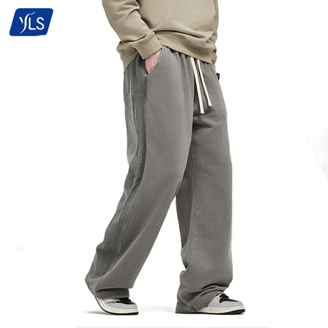 YLS 광저우 공장 원시 밑단 오픈 바닥 운동복 남성 52% 면 특대 땀 바지 조깅 사용자 정의 바지
